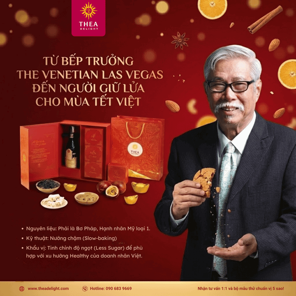Thay vì sử dụng bánh kẹo sản xuất công nghiệp đại trà, các đơn vị uy tín hiện nay xu hướng chuyển sang dòng bánh thủ công chất lượng cao. Điển hình như tại Thea Delight, các dòng bánh quy và bánh nướng hạt đều được trực tiếp nghiên cứu và kiểm soát bởi Bếp trưởng Long Nguyễn – cựu Bếp trưởng bếp bánh tại khách sạn 5 sao danh tiếng ở Mỹ. Điều này là "tấm vé bảo hiểm" giúp doanh nghiệp xóa tan nỗi lo về an toàn thực phẩm.