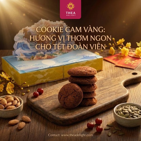Cookie Cam Vàng (100g): Một nốt hương Lễ hội (Festive). Chef Long kết hợp mứt cam vàng Việt Nam với gia vị Lebkuchen (quế, hồi) của Châu Âu. Bánh thơm ấm, kích thích sự sáng tạo